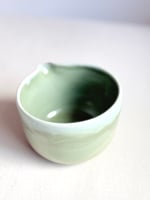 Hand made matcha bowl in premium porcelain. Glazed in a soft green celadon with aquamarine accent at the rim. The celadon glazed was applied in organic layers, which results in a subtle painterly effect. Beautiful to look at and lovely to use.