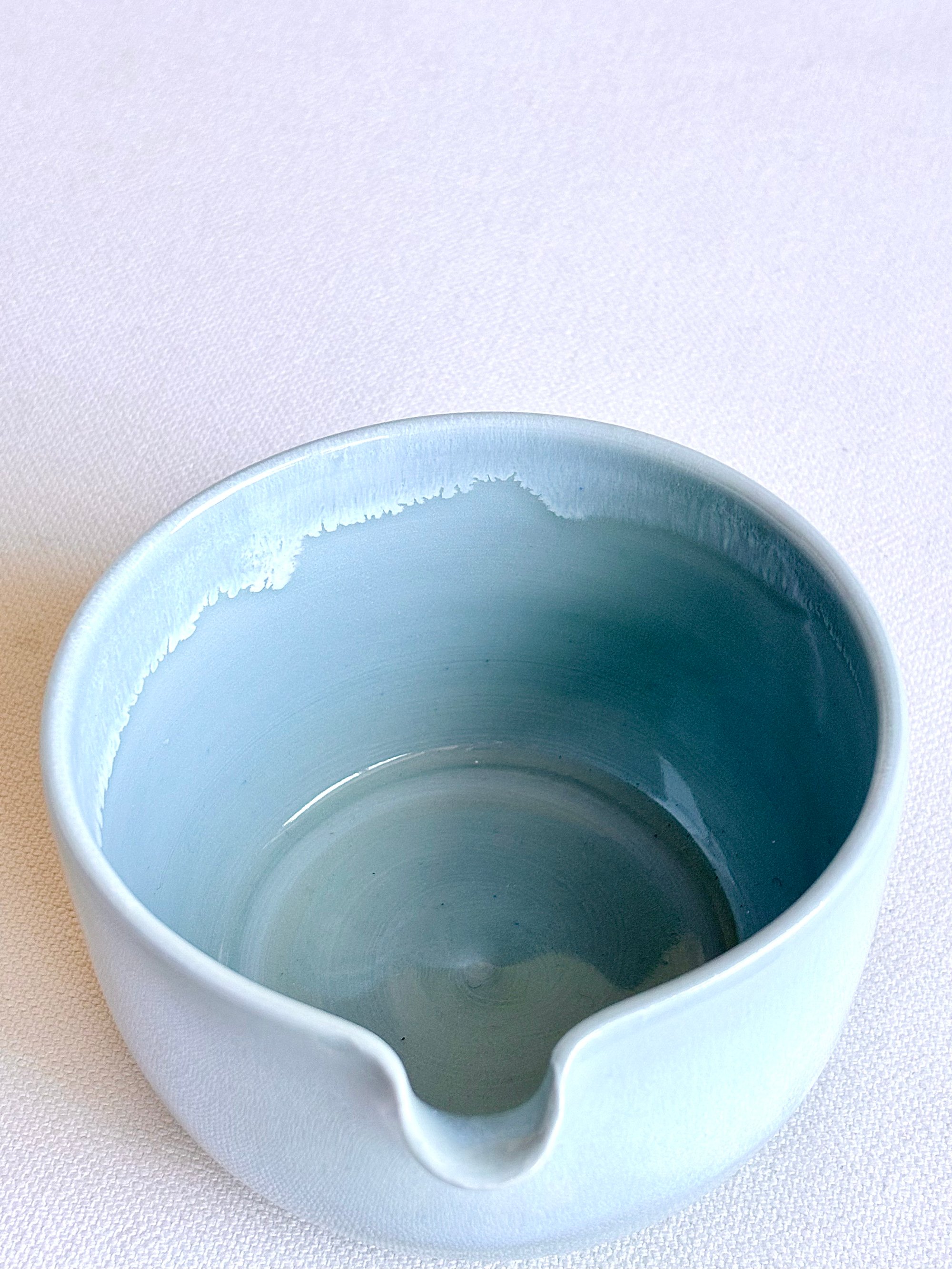 Highly requested and always a crowd favorite. Hand thrown in blue pigmented porcelain, this dreamy piece brings a sense of serenity to your tea ritual. It is finished with a clear and opalescent glaze. Subtle crackling throughout.
